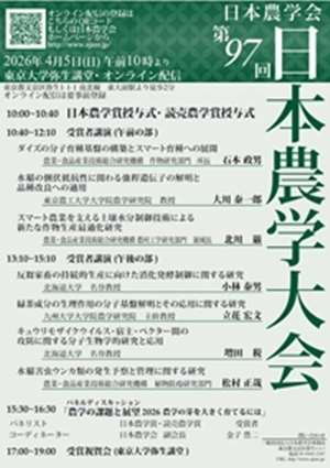 国際貢献する日本の農学」開催のお知らせ (2024/7/18) - 第95回日本農学大会写真を掲載しました。(2024/4/24)